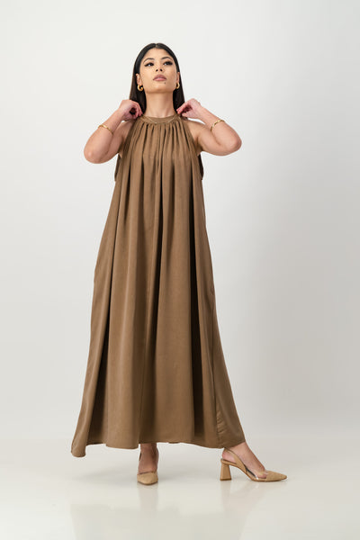 Brown satin trapeze dress